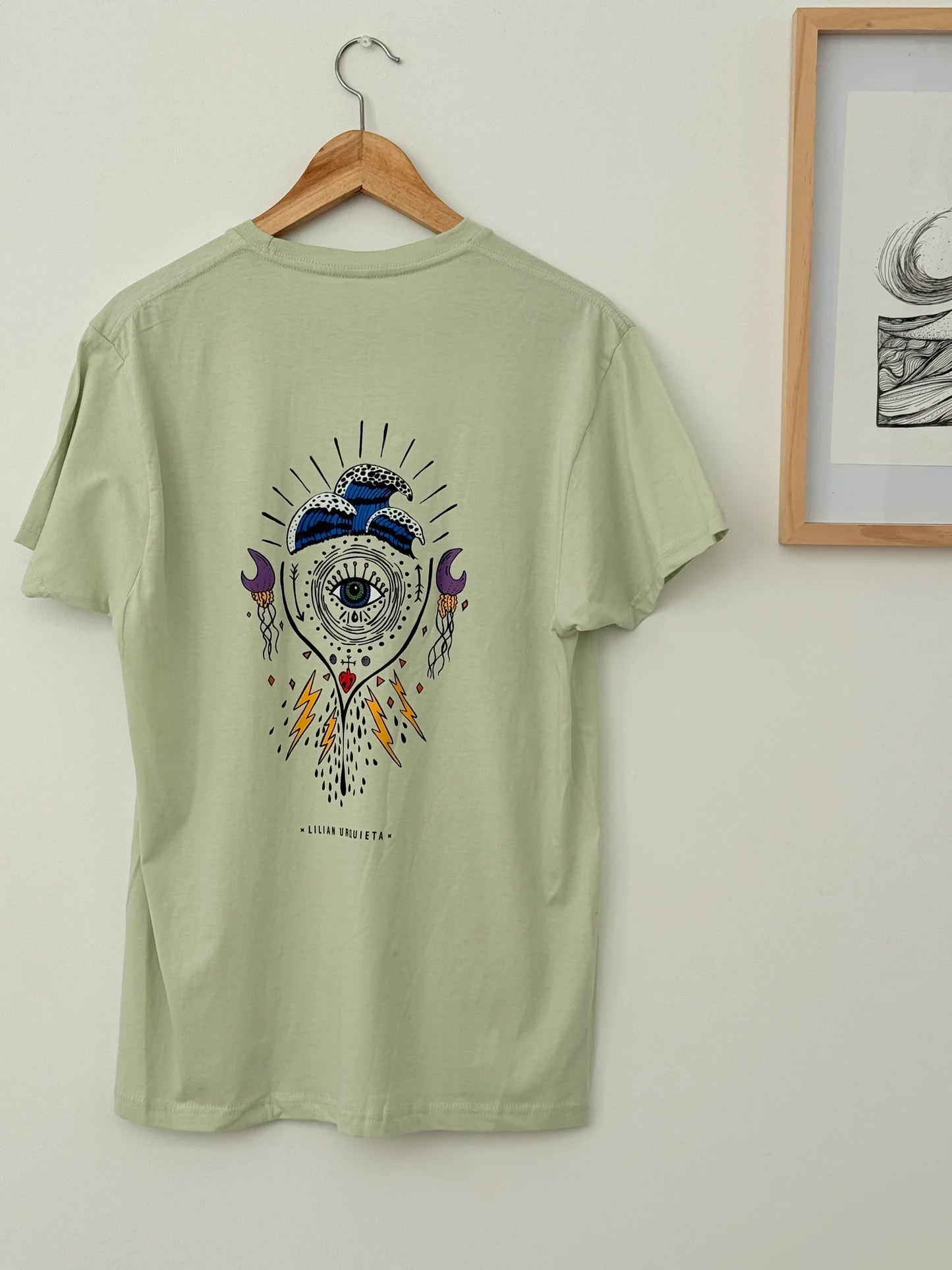 Medusas que parecen lunas, olas que respiran, lluvia que limpia y un ojo que observa desde la calma. Una ilustración que nace del mar y de la fuerza de lo invisible. Habla de fluir, de soltar y de confiar en lo que llega. Una camiseta suave, con alma oceánica, para quienes encuentran refugio en el agua, inspiración en las tormentas y belleza en todo lo que vibra dentro.