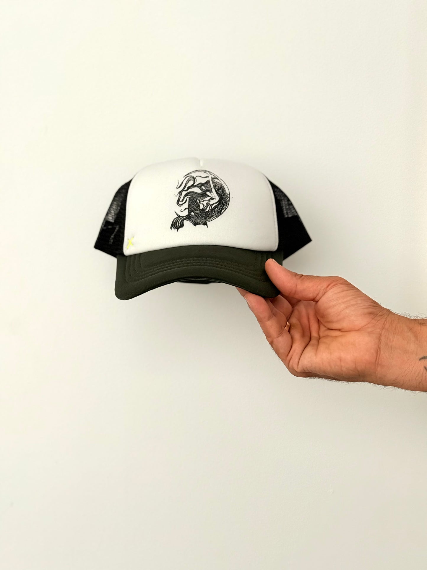 Es una gorra tipo trucker con ilustración original serigrafiada en el frontal, creada en nuestro estudio. La sirena simboliza sensibilidad, poder interior y esa parte indomable que no se deja atrapar.