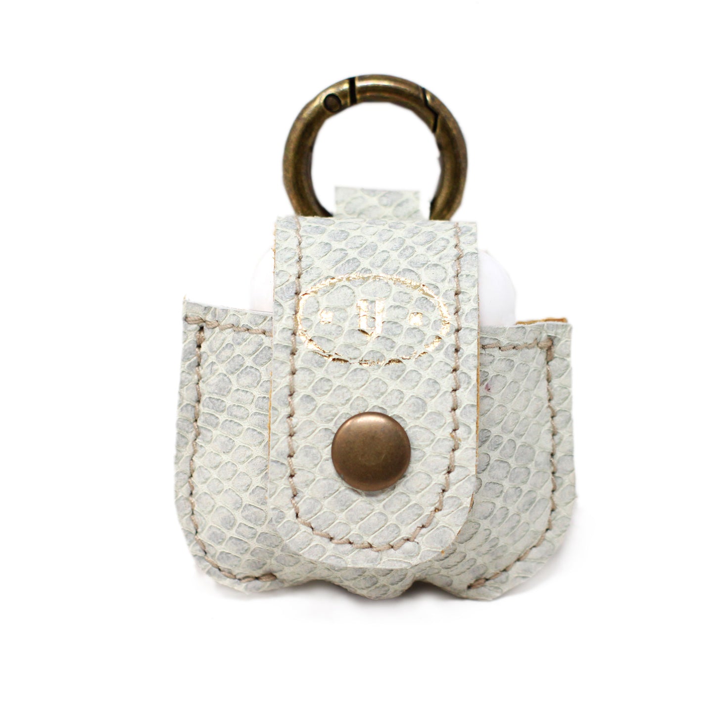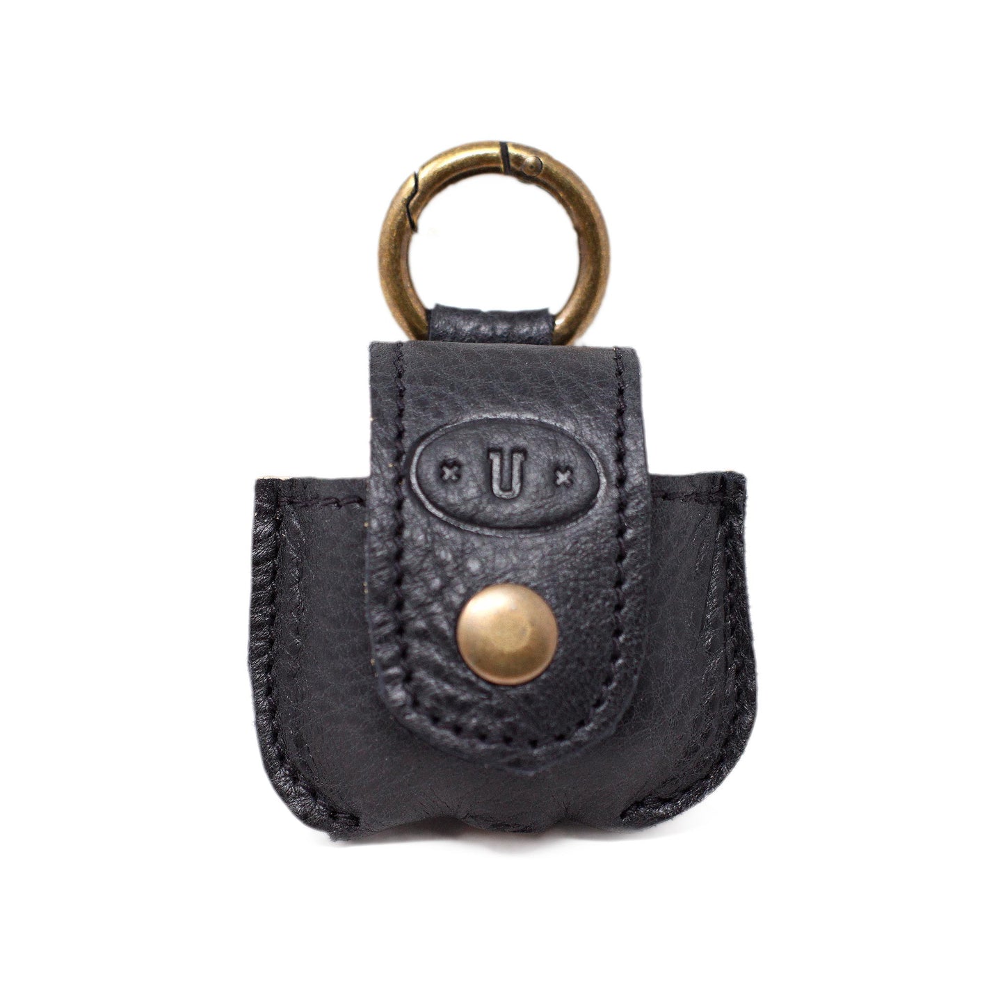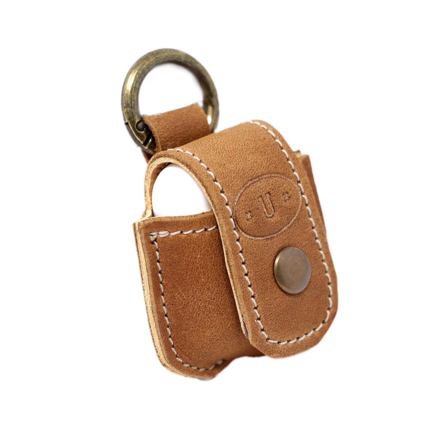 Handmade leather case for Apple Airpods , with button closure and carabiner hook.