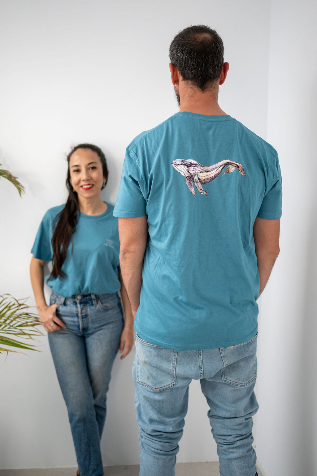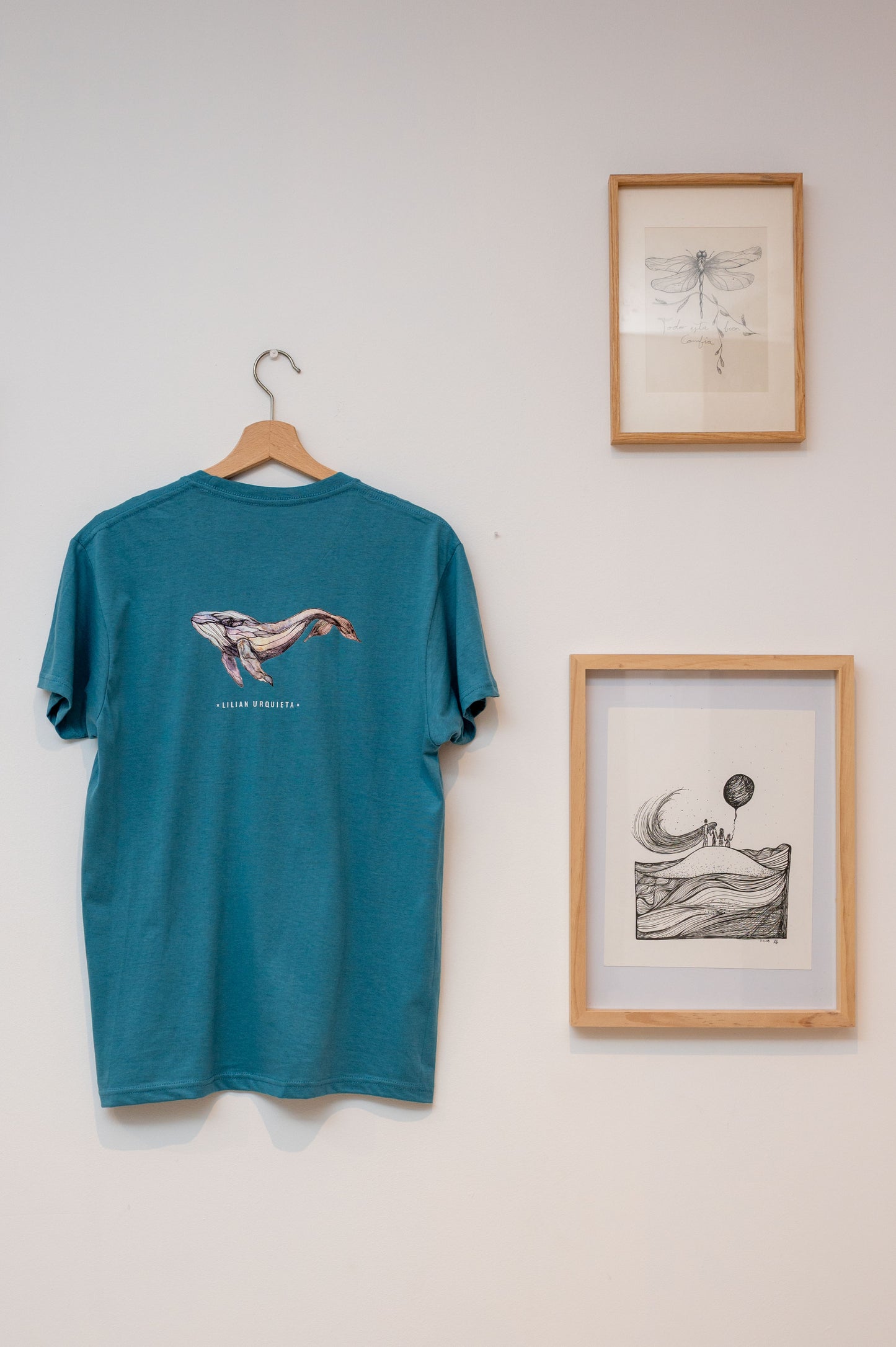 Esta camiseta unisex presenta un diseño exclusivo de una ballena sola, representada con colores vibrantes y con el mensaje inspirador: "Lenta, libre y sin miedo". Un símbolo de calma, valentía y libertad, que te invita a navegar por la vida con tranquilidad y sin temor.