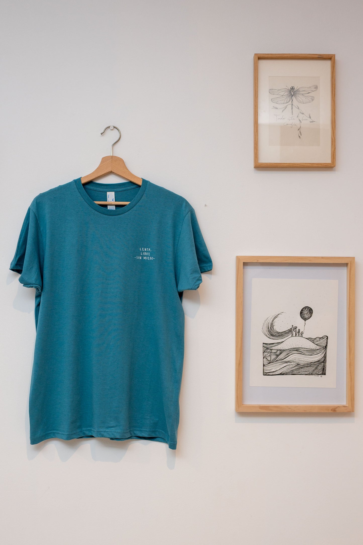 La ballena, como majestuosamente se mueve en los océanos, representa la grandeza y la paz del mar, mientras que el mensaje de "Lenta, libre y sin miedo" resalta la importancia de vivir a tu propio ritmo, ser valiente y no dejar que el miedo te detenga. Es una prenda perfecta para quienes buscan un diseño poderoso, pero lleno de serenidad y sabiduría.