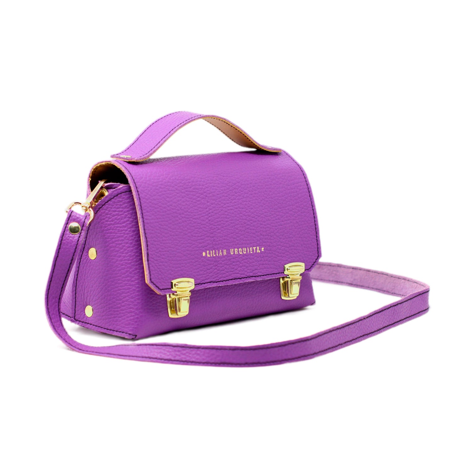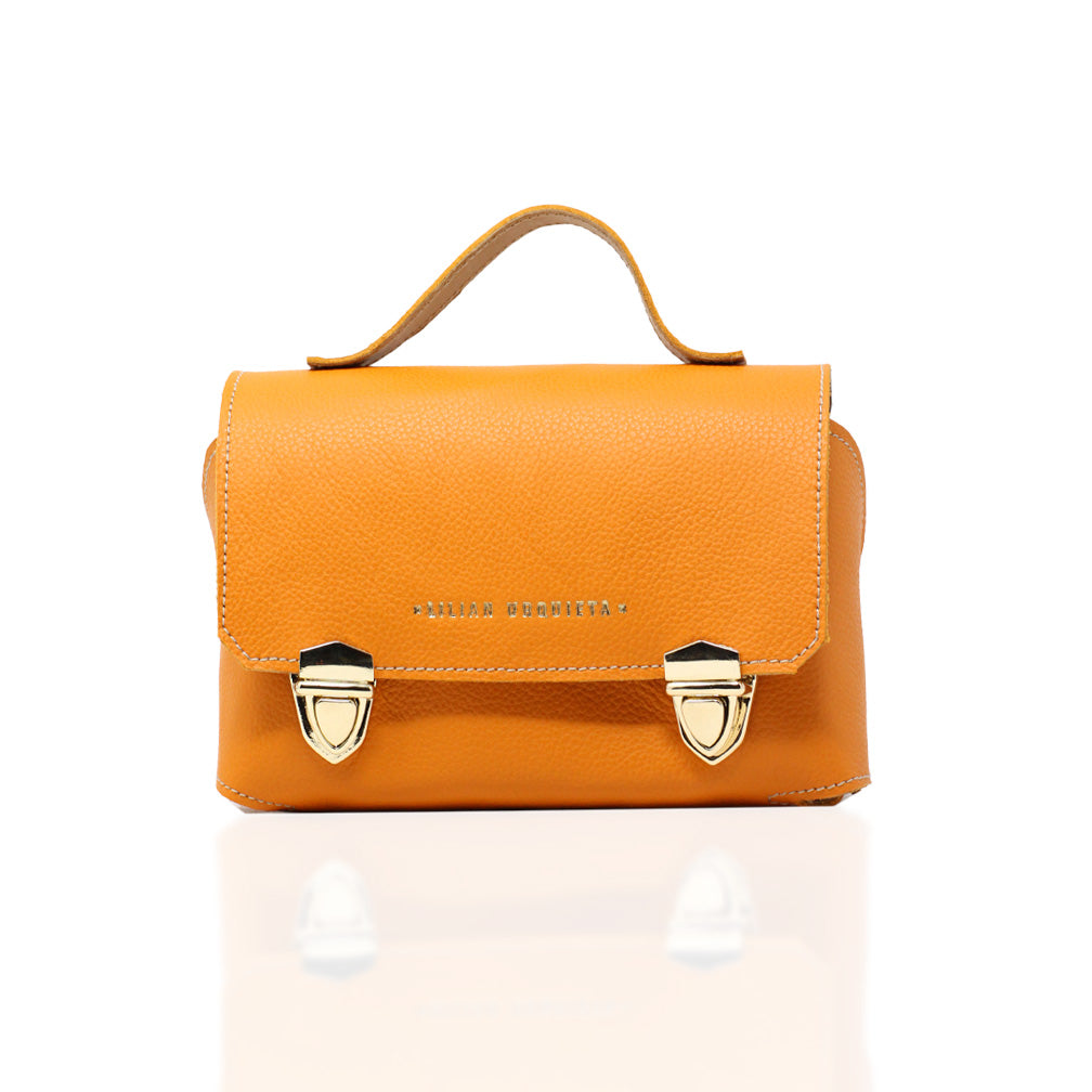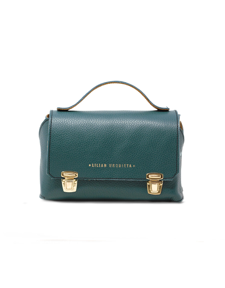 Leather shoulder bag with golden closures, available in various colors. This design will add an elegant touch to any look, both day and night. Its size is ideal to store all your things, they will all fit in despite of being a compact bag.
