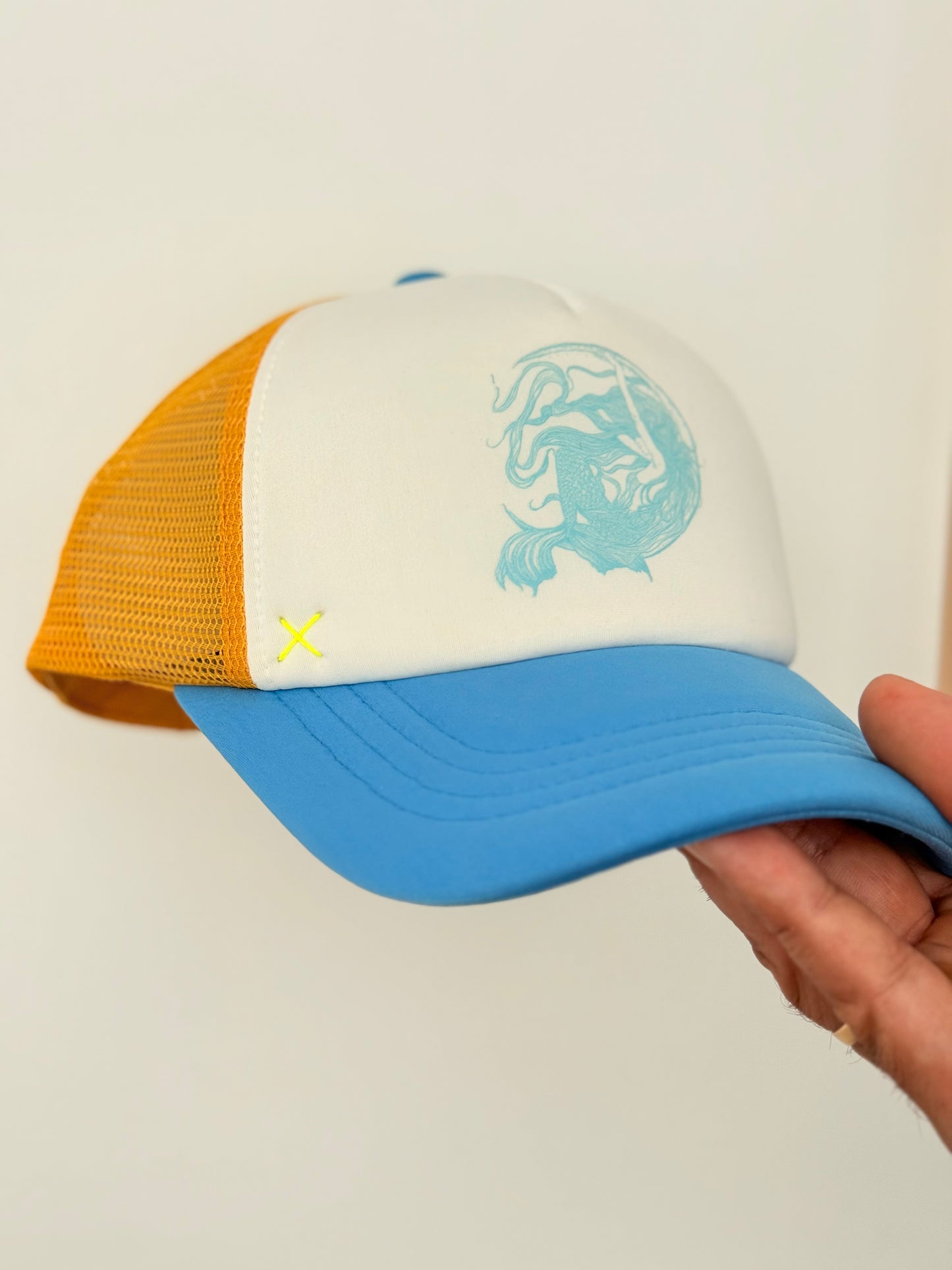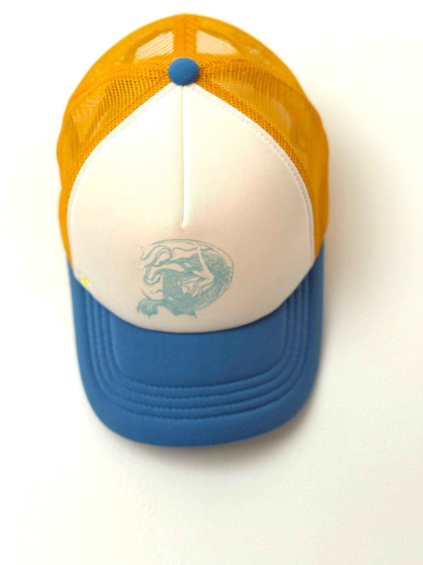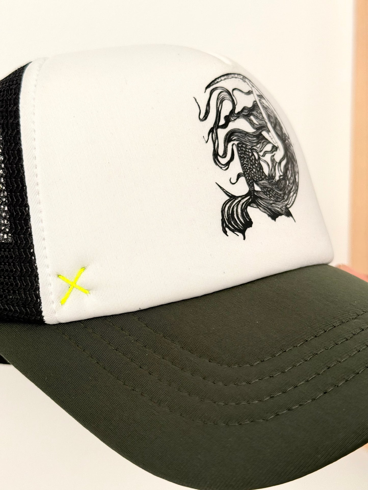 Nuestra gorra Retro 5-Panel Trucker es el lienzo perfecto para nuestras ideas. No fabricamos la base, pero sí la transformamos: cada gorra lleva ilustraciones originales dibujadas por nosotros y aplicadas a mano, una a una, con procesos cuidados y responsables. Eso la convierte en una pieza única, artística y con alma propia.