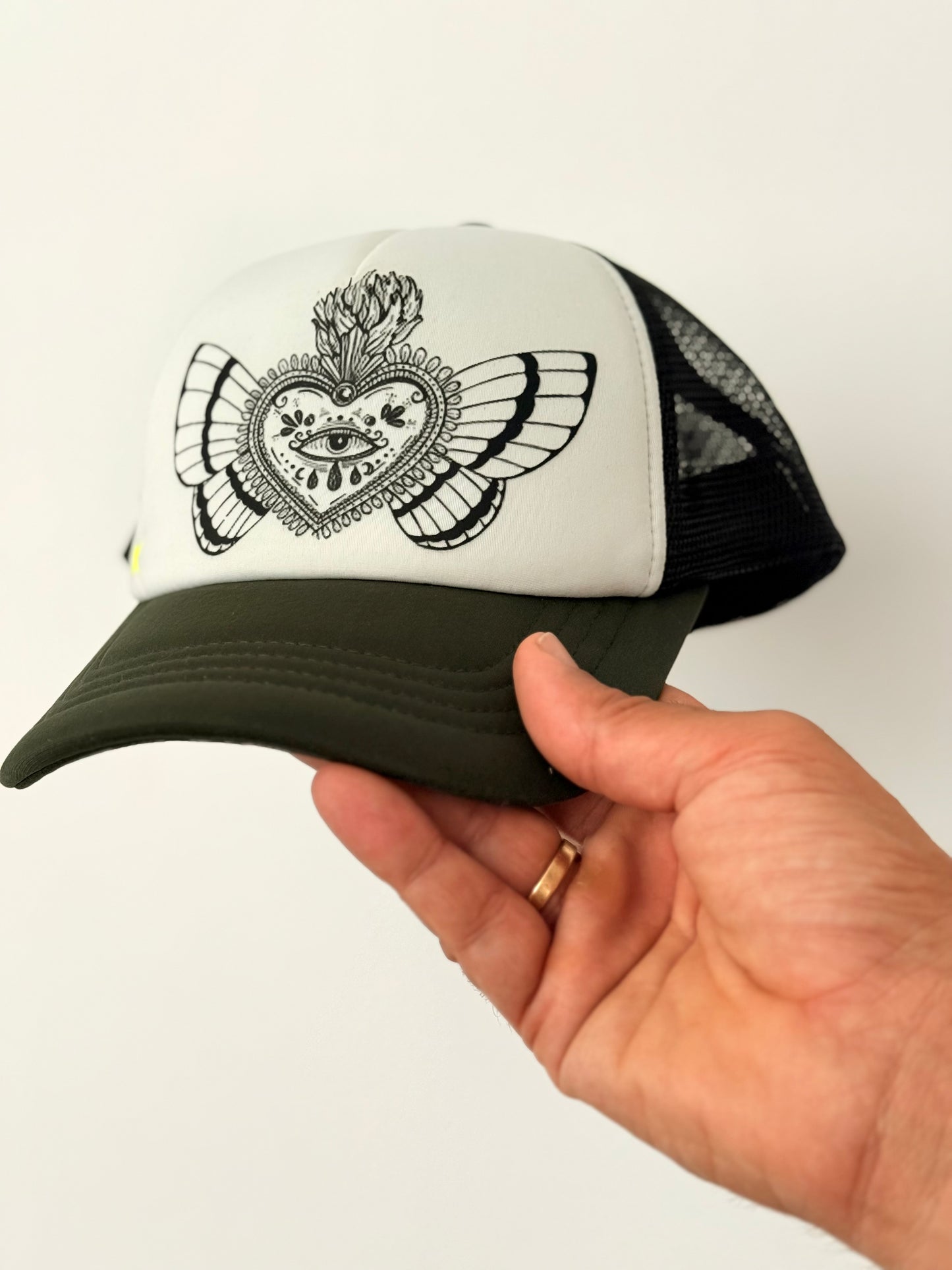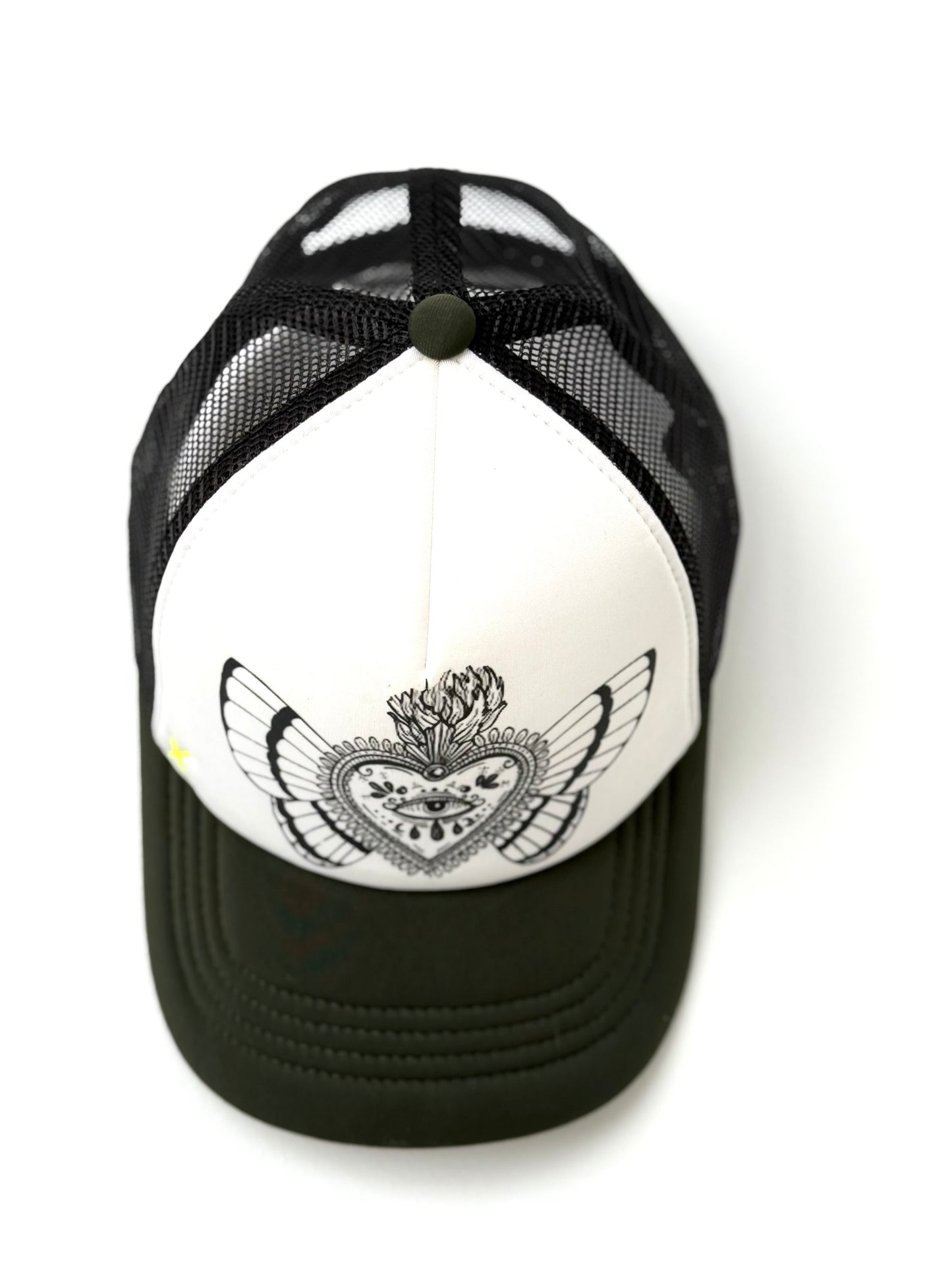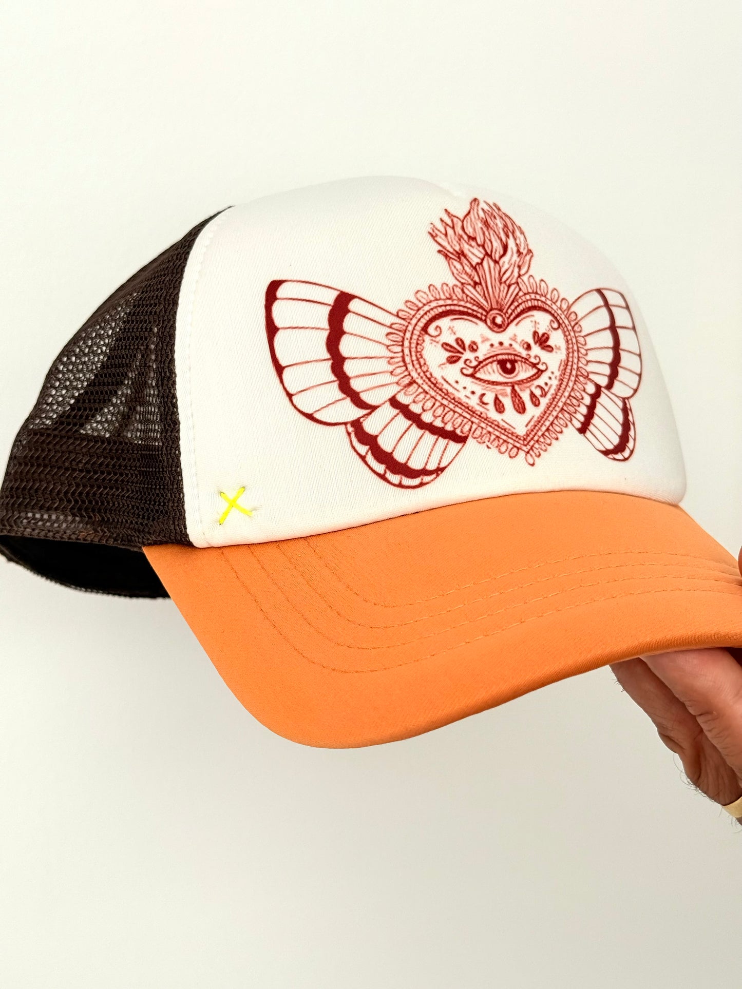 Nuestra gorra Retro 5-Panel Trucker es el lienzo perfecto para nuestras ideas. No fabricamos la base, pero sí la transformamos: cada gorra lleva ilustraciones originales dibujadas por nosotros y aplicadas a mano, una a una, con procesos cuidados y responsables. Eso la convierte en una pieza única, artística y con alma propia.