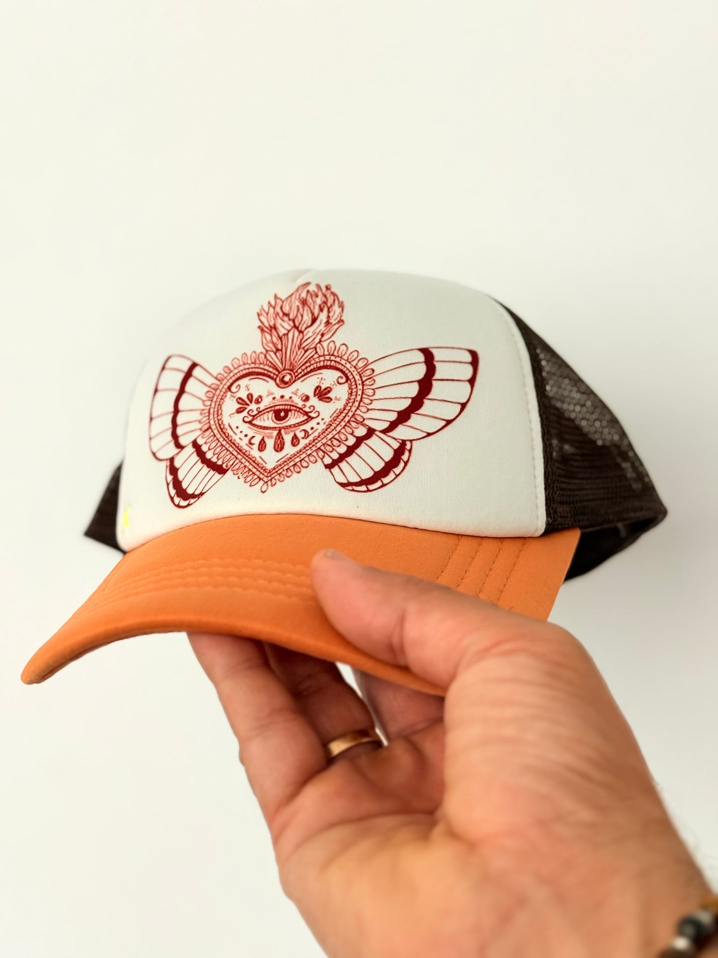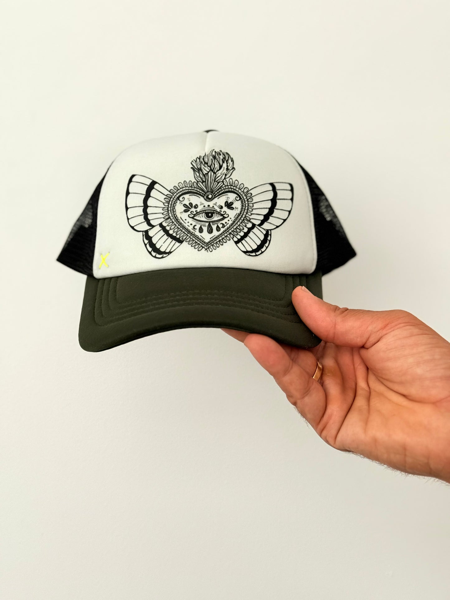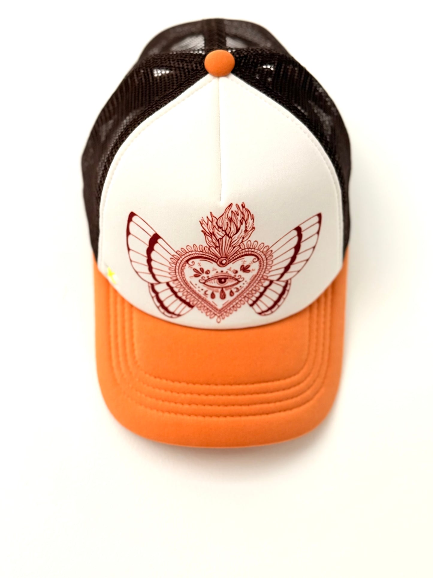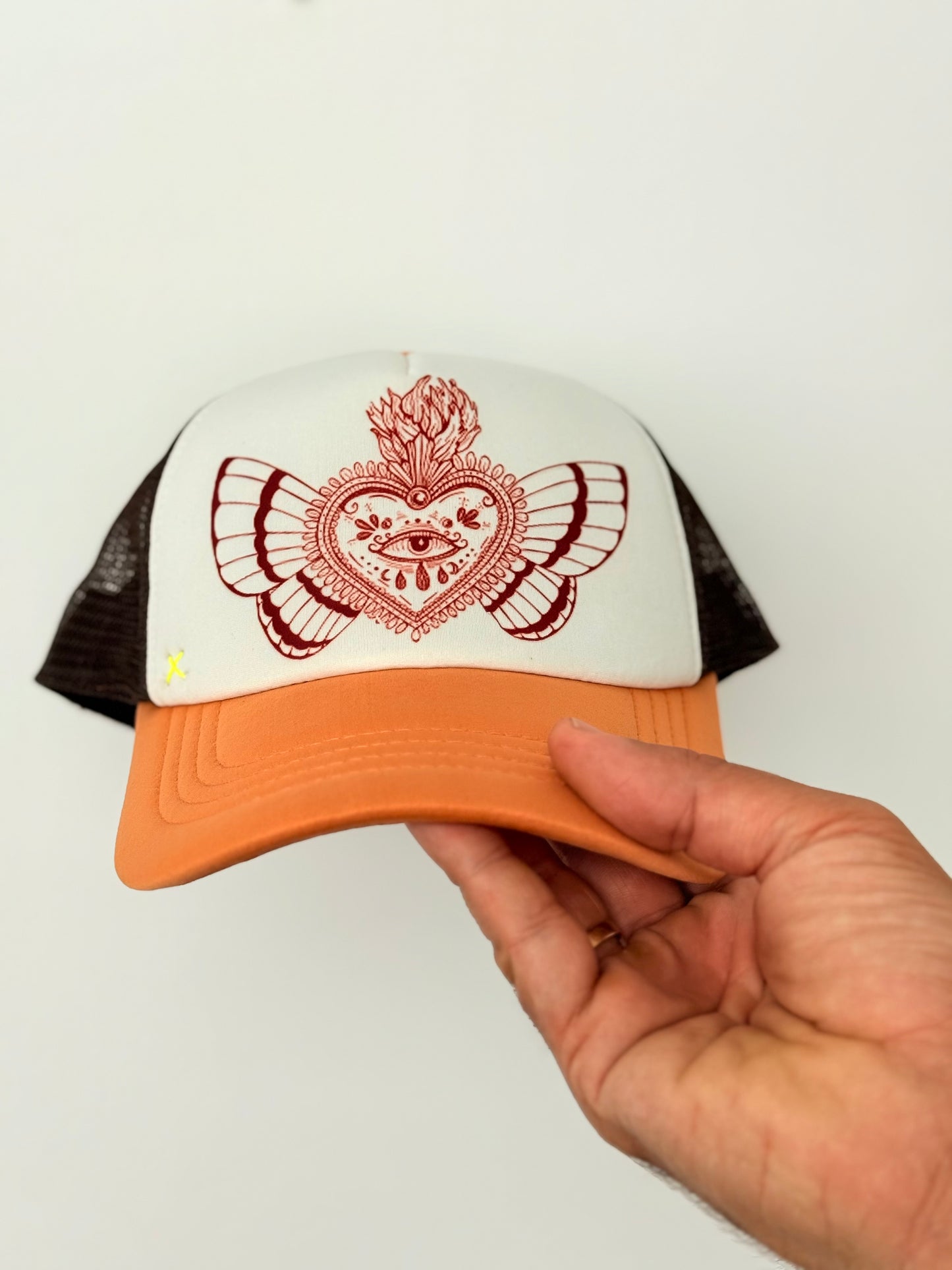 Nuestra gorra Retro 5-Panel Trucker es el lienzo perfecto para nuestras ideas. No fabricamos la base, pero sí la transformamos: cada gorra lleva ilustraciones originales dibujadas por nosotros y aplicadas a mano, una a una, con procesos cuidados y responsables. Eso la convierte en una pieza única, artística y con alma propia.