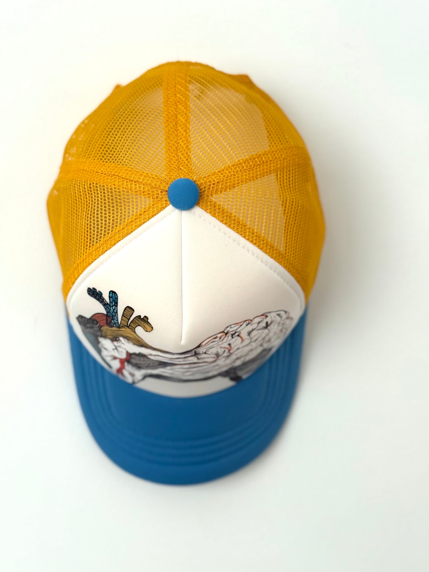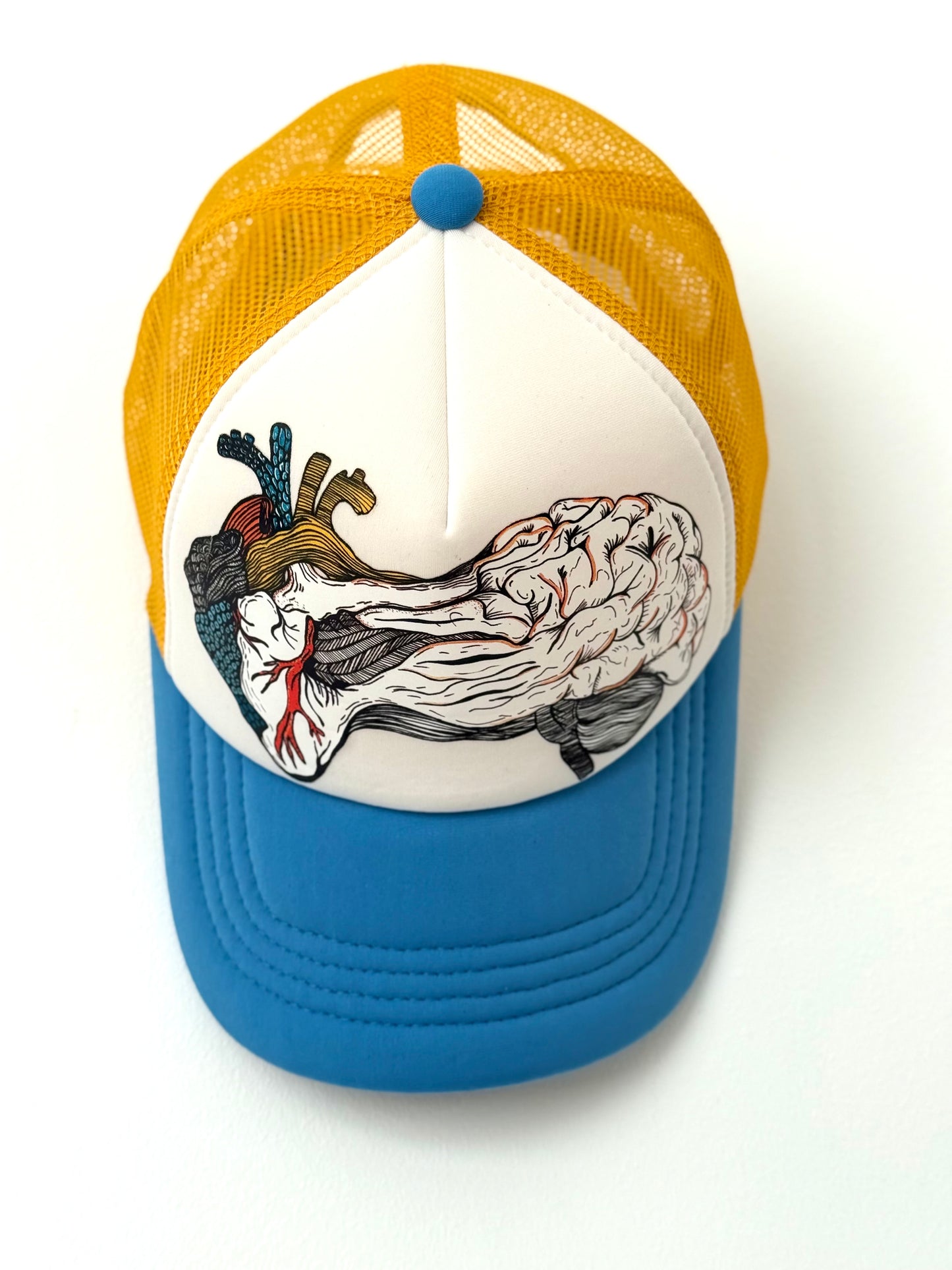 Nuestra gorra Retro 5-Panel Trucker es el lienzo perfecto para nuestras ideas. No fabricamos la base, pero sí la transformamos: cada gorra lleva ilustraciones originales dibujadas por nosotros y aplicadas a mano, una a una, con procesos cuidados y responsables. Eso la convierte en una pieza única, artística y con alma propia.