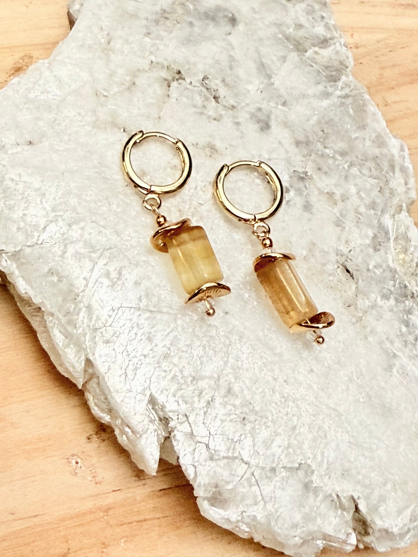Cada par de estos pendientes ha sido elaborado artesanalmente, cuidando cada detalle. Su diseño combina la elegancia del aro dorado con la belleza orgánica de una Cuarzo Citrino única en forma y tonalidad.