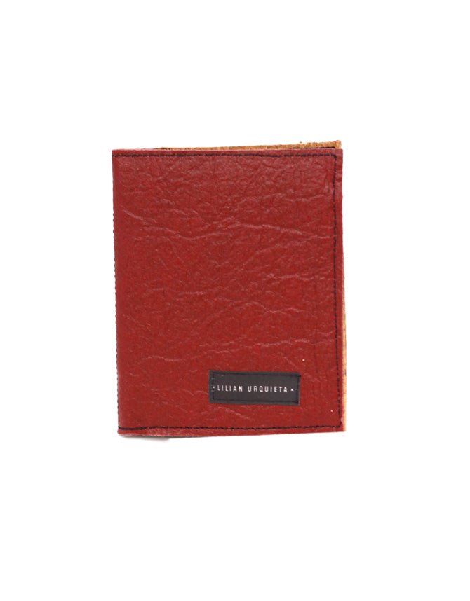 Handmade passport cover with black or burgundy vegan leather and cork interior.